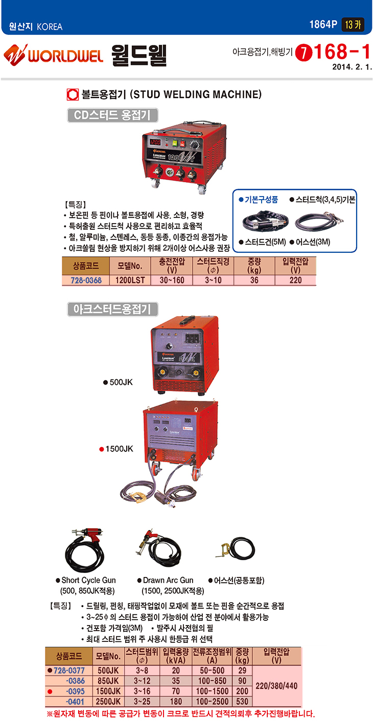 [¿ùµåÀ£] º¼Æ®¿ëÁ¢±â/CD ½ºÅÍµå ¿ëÁ¢±â(1200LST, ½ºÅ͵åÁ÷°æ:3~10ÆÄÀÌ, 220V¿ë)(Stud Welding Machine)
