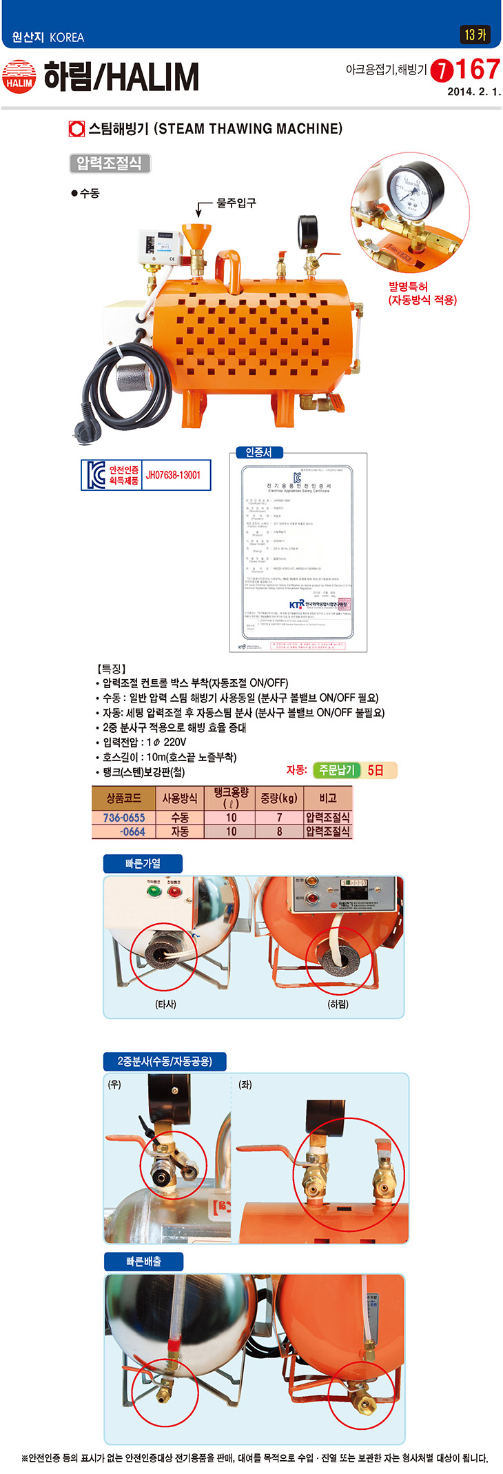 [Çϸ²] ½ºÆÀÇØºù±â(¾Ð·ÂÁ¶Àý½Ä, ¼öµ¿, ÅÊÅ©¿ë·®:10¸®ÅÍ)(Steam Thawing Machine)