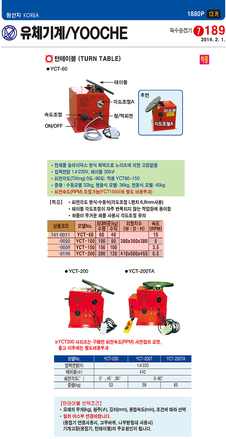 [À¯Ã¼±â°è] ¼öµ¿ ÅÏÅ×À̺í/Æ÷Áö¼Å³Ê(YCT-200, ¼öÆò:200Kg/¼öÁ÷:120Kg, ¿ëÁ¢±â ¹× ±â°èÁ¶¸³¿ë)(Turn Table)