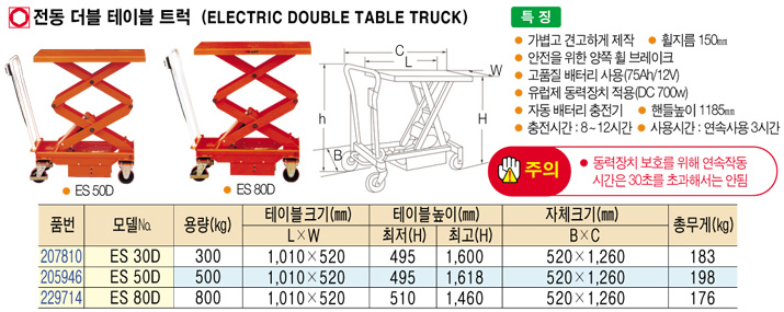 [UDT] ES 30D Àüµ¿ ´õºí Å×ÀÌºí Æ®·°(ºÎÇÏÁß·® 300Kg)(ELECTRIC DOUBLE TABLE TRUCK)=>Á¦Ç°´ÜÁ¾!