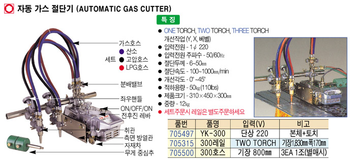 [YUNGKWANG] YK-300 ÀÚµ¿ °¡½º Àý´Ü±â º»Ã¼+ÅäÄ¡ (AUTOMATIC GAS CUTTER)