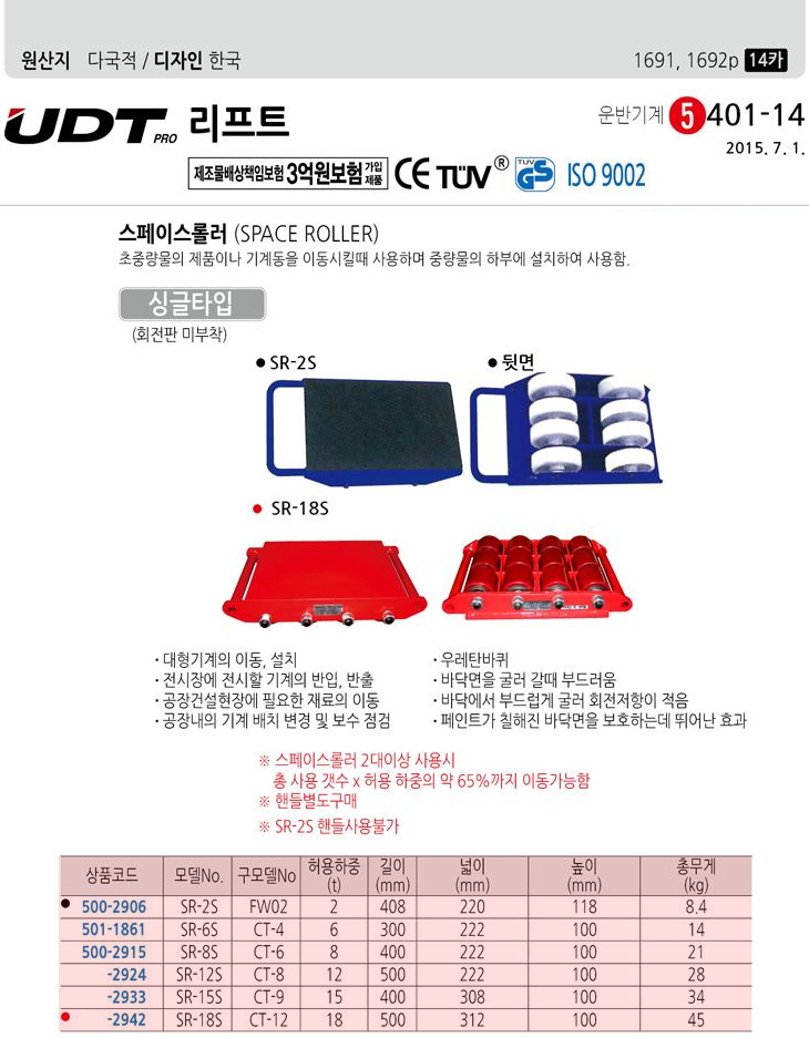 [UDT] ½ºÆäÀ̽º·Ñ·¯ ½Ì±ÛŸÀÔ(SR-12S/CT-8, ¿ë·®:12Åæ, ¼¿ÇÁ°¡±¸À̵¿, ±â±¸/°ø±¸/Áß·®¹° À̵¿/±â°èÀ̵¿±â±¸/´ëÇü±â°èÀ̵¿)(Space Roller)