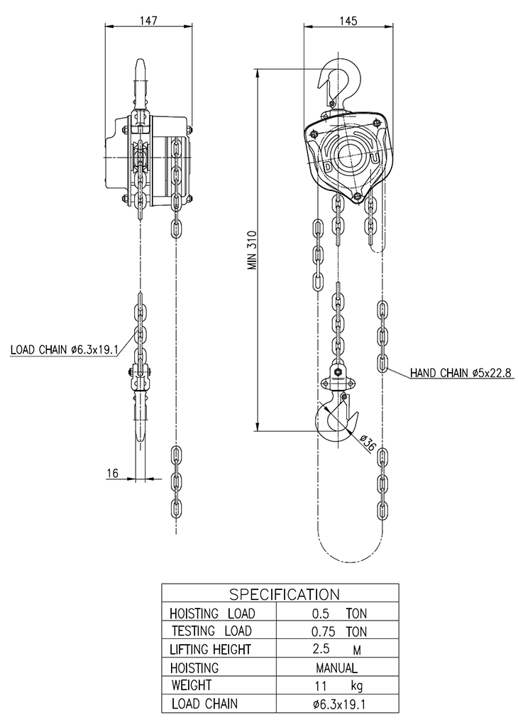 [´ë»ê] 0.5t üÀÎ ºí·° (CHAIN BLOCK)