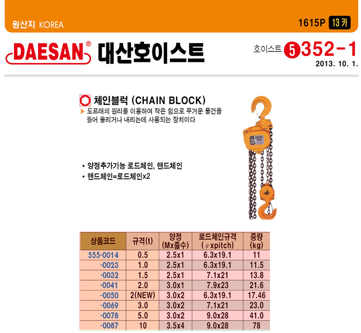 [´ë»ê] 10t üÀÎ ºí·° (CHAIN BLOCK)