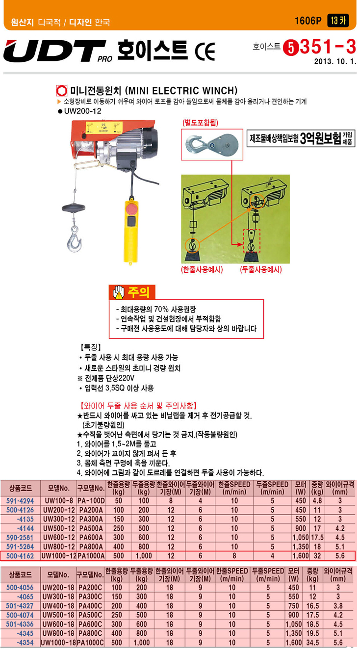 [UDT] ¹Ì´ÏÀüµ¿À©Ä¡(UW500-12/PA-500A, ÇÑÁÙ:250Kg/µÎÁÙ:500Kg, ÇÑÁÙ 12¹ÌÅÍ/µÎÁÙ 6¹ÌÅÍ, ´Ü»ó220V)(MINI ELECTRIC WINCH)