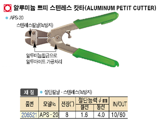 [·Îº¸½ºÅÍ] ¾Ë·ç¹Ì´½ »Ú¶ì ½ºÅÙ·¹½º ıŸ(Aluminum petit cutter) APS-20