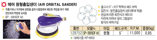 [SP¿¡¾î] SP-3905DF A5 ¿¡¾î ¿øÇüÈíÀÔ»÷´õ (AIR ORBITAL SANDER)