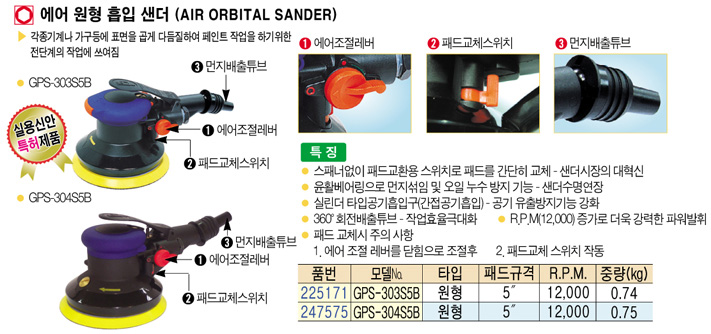 [GISON] GPS-303S5B ¿¡¾î ¿øÇü ÈíÀÔ »÷´õ (AIR ORBITAL SANDER):´ÜÁ¾!!