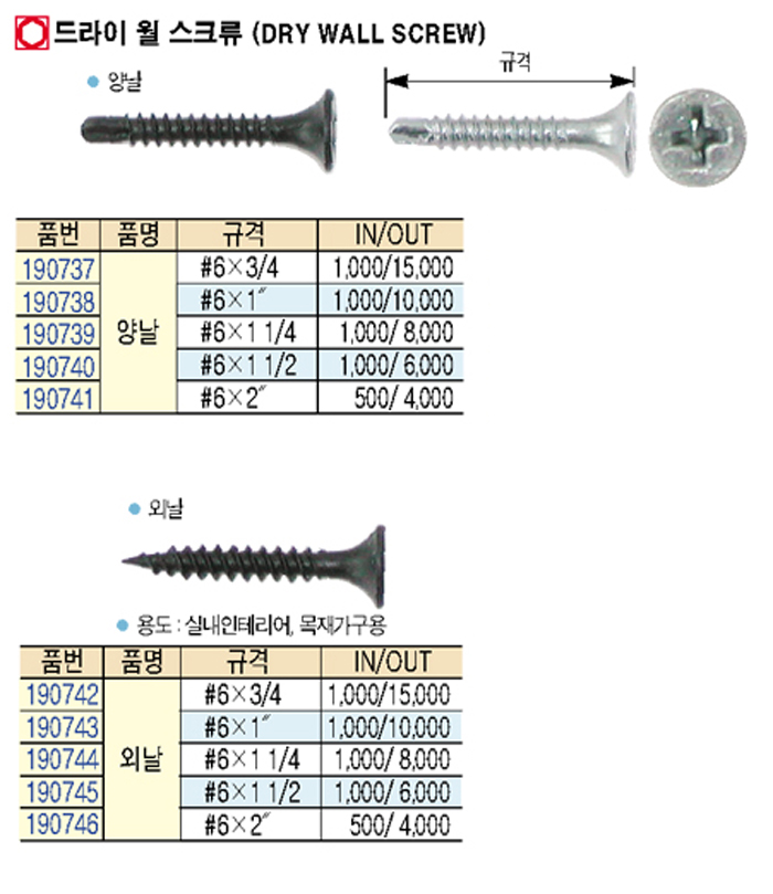 [´ëÈ­] µå¶óÀÌ ¿ù ½ºÅ©·ù(Dry wall screw) ¾ç³¯ #6x3/4