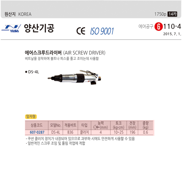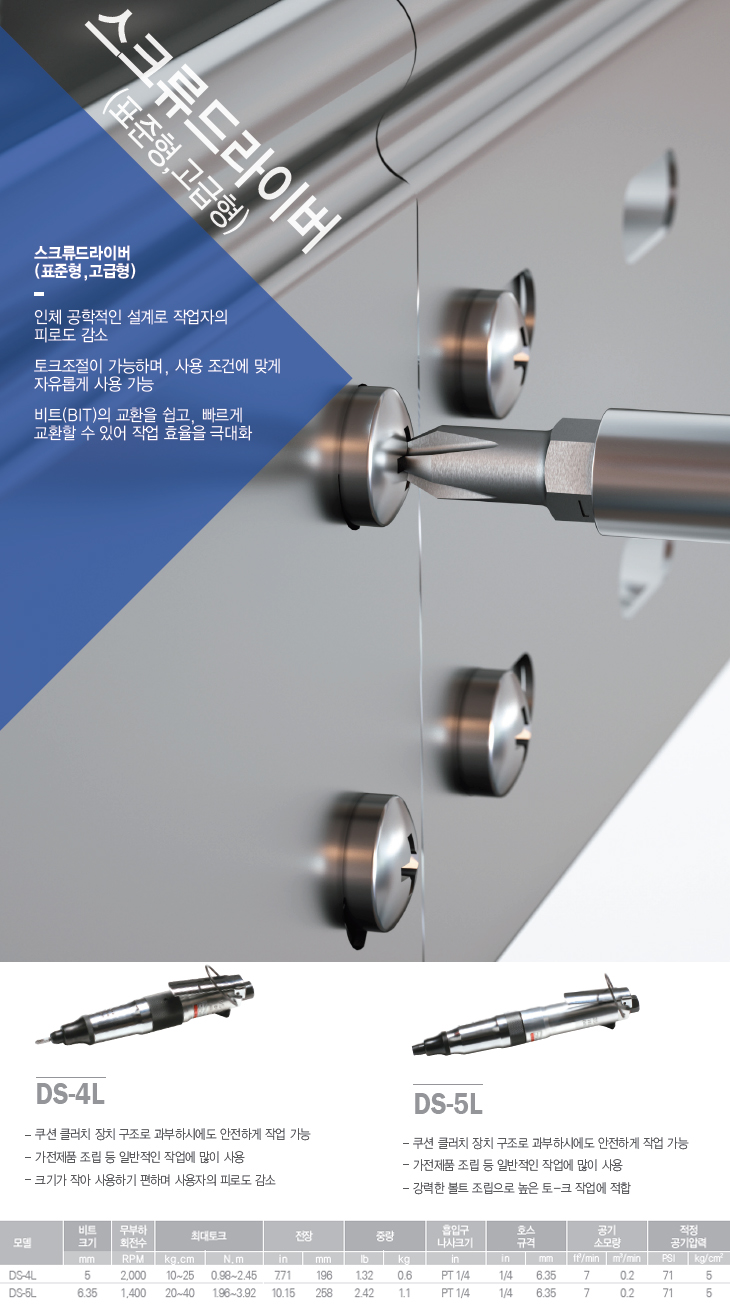[YS] ¿¡¾î½ºÅ©·çµå¶óÀ̹ö(DS-4L, Ç¥ÁØÇü/°í±ÞÇü, ´É·Â:4mm)(Air Screw Driver)