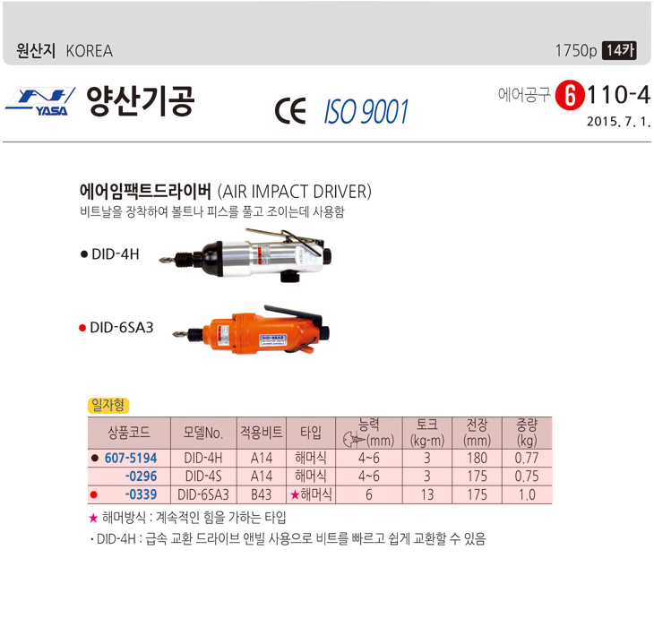 [YS] ¿¡¾î ÀÓÆÑÆ® µå¶óÀ̹ö(DID-4S, ÀÏÀÚÇü/ÇØ¸Ó½Ä, ´É·Â:4~6mm)(Air Impact Driver)