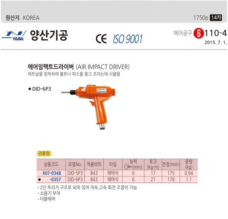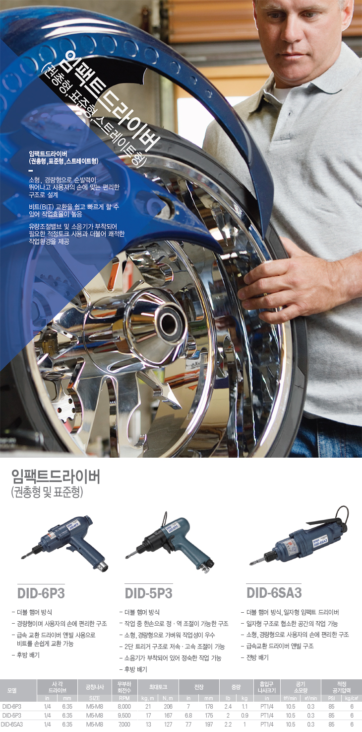 [YS] ¿¡¾î ÀÓÆÑÆ® µå¶óÀ̹ö(DID-5P3, ±ÇÃÑÇü/ÇØ¸Ó½Ä, ´É·Â:6mm)(Air Impact Driver)