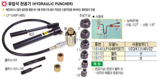 [·Îº¸½ºÅÍ] LP104BP(SET) À¯¾Ð½Ä õ°ø±â¼¼Æ®(HYDRAULIC PUNCH SET)