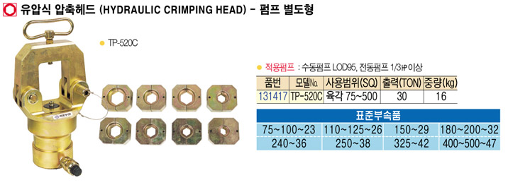 [žÁ¤¹Ð] TP-520C À¯¾Ð½Ä ¾ÐÃàÇìµå¼¼Æ®(HYDRAULIC CRIMPING HEAD) - ÆßÇÁº°µµÇü