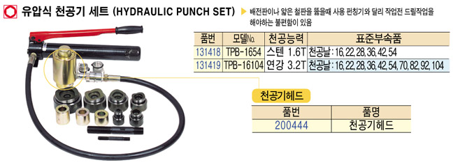 [žÁ¤¹Ð] TPB-70104 À¯¾Ð½Ä õ°ø±â³¯ ¼¼Æ®(HYDRAULIC PUNCH SET)