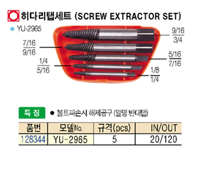 [OKT] È÷´Ù¸®(¹Ý´ë)ÅǼ¼Æ®(Screw Extractor Set) YU-2965 ǰ¹ø231-0141