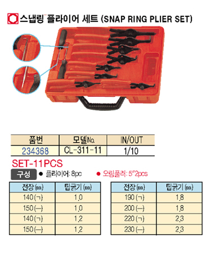 [KFT] ½º³À¸µ ÇöóÀÌ¾î ¼¼Æ®(Snap Ring Plier Set) CL-311-11