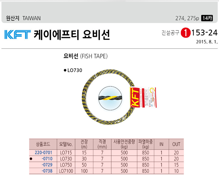 [KFT] ÄÉÀÌ¿¡ÇÁƼ ¿äºñ¼±/ÀÎÃâ¼±/³ëºñ¼±/·Îºñ¼±(LO715/LO730/LO750/LO7100 ±æÀ̼±Åð¡´É, 7ÆÄÀÌ, ¾ÈÀüÁß·®:500Kg)(Fish Tape)