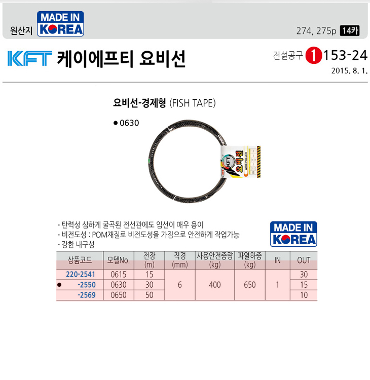 [KFT] ±¼Àý±¸°£ Á¢ÇÕ °æÁ¦Çü ¿äºñ¼±/ÀÎÃâ¼±/³ëºñ¼±/·Îºñ¼±(15~50¹ÌÅÍ ±æÀ̼±Åð¡´É, 6ÆÄÀÌ, ¾ÈÀüÁß·®:400/ÆÄ¿­Áß·®:650Kg)(Fish Tape)