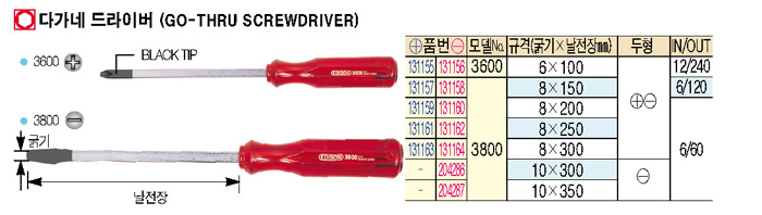 [¿¡µð½¼] ´Ù°¡³× µå¶óÀ̹ö(Go-Thru Screwdriver) 3800 (8x200mm)
