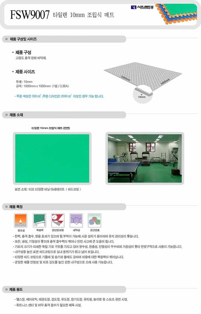 [½º¿Í´Ï] ŸÀÏ·» 10mm Á¶¸³½Ä ¸ÅÆ® (FSW9007, 1000x1000mm)