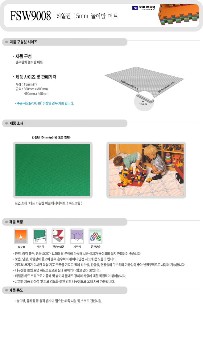 [½º¿Í´Ï] ŸÀÏ·» 15mm ³îÀÌ¹æ ¸ÅÆ® (FSW9008, 300x300mm)