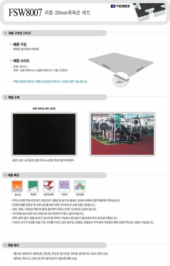[½º¿Í´Ï]ÆÛÁñ 20mm üÀ°°ü ¸ÅÆ® (FSW8007) 100cm*100cm