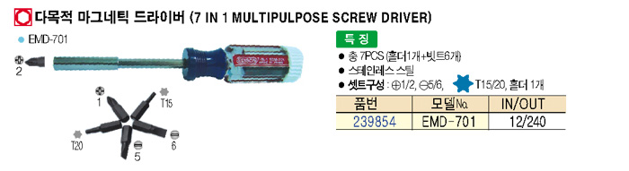 [¿¡µð½¼] ´Ù¸ñÀû ¸¶±×³×ƽ µå¶óÀ̹ö(7 in 1 Multipulpose Screw Driver) EMD-701