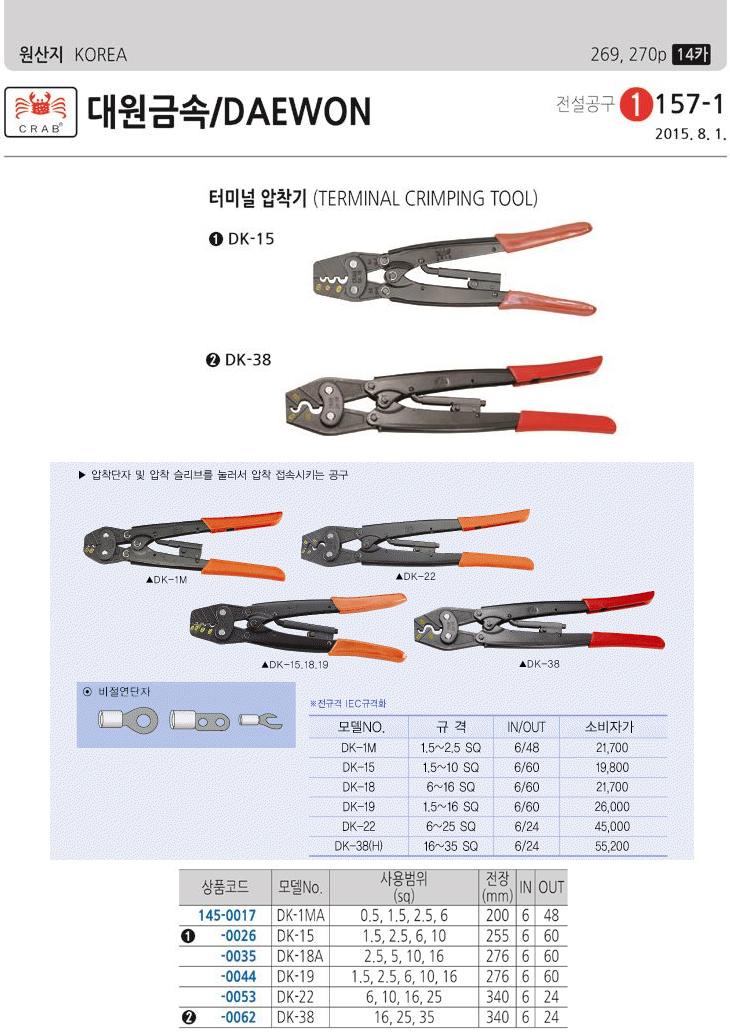[´ë¿ø±Ý¼Ó] Å͹̳Π¾ÐÂø±â(DK-22, ¾ÐÂø´ÜÀÚ/¾ÐÂø½½¸®ºê ¾ÐÂø °ø±¸, 6/10/16/25Sq)(Terminal Crimping Tool)