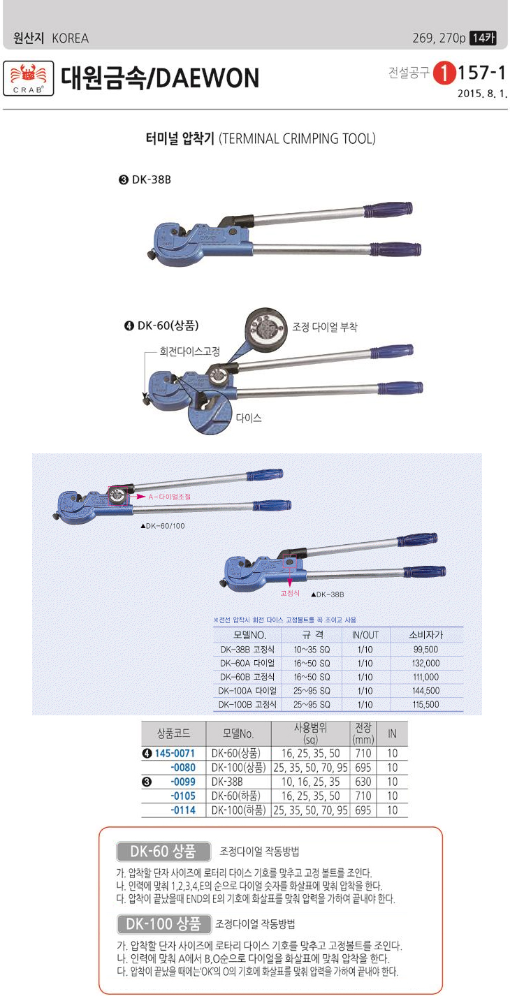 [´ë¿ø±Ý¼Ó] ´ëÇü Á¶ÀýÇü Å͹̳Π´ÜÀÚ ¾ÐÂø±â/Àü¼±¾ÐÂø/¾ÐÂøÅø(DK-60 ÇÏǰ, ¾ÐÂø´ÜÀÚ/¾ÐÂø½½¸®ºê ¾ÐÂø °ø±¸, 16/25/35/50Sq)