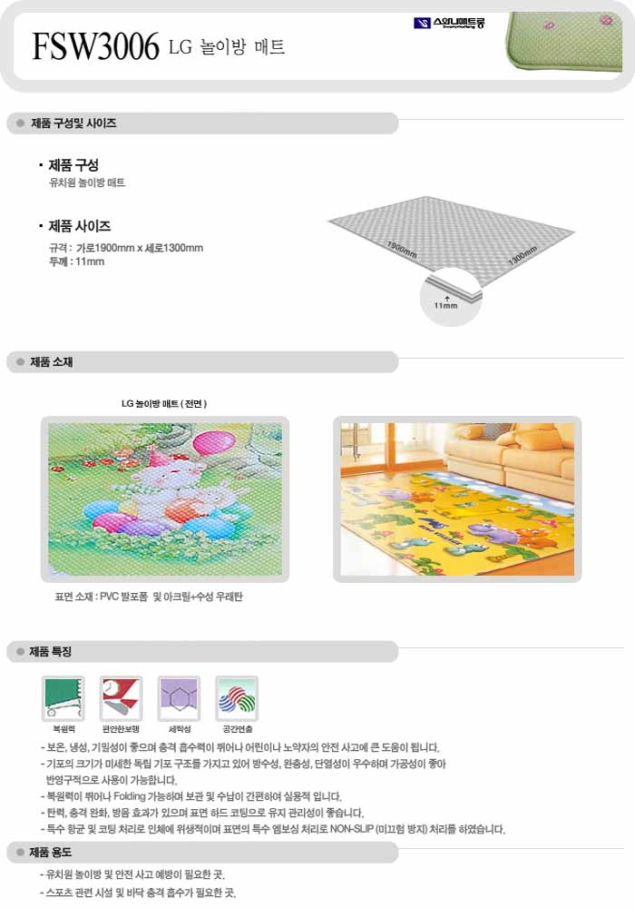 [½º¿Í´Ï]FSW3006 LG ³îÀÌ¹æ ¸ÅÆ® 130cm*190cm