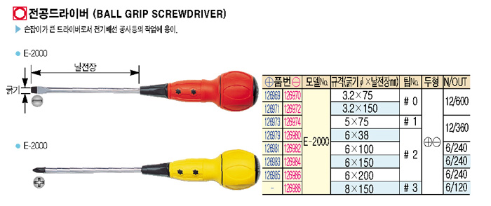 [·£¼­] Àü°øµå¶óÀ̹ö(Ball Grip Screwdriver) E-2000 (6x200mm)