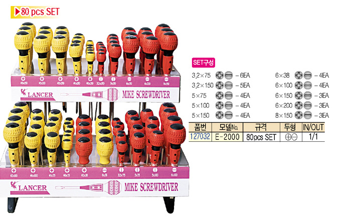 [·£¼­] Àü°øµå¶óÀ̹ö 80pcs ¼¼Æ®(Ball Grip Screwdriver) E-2000 80pcs SET