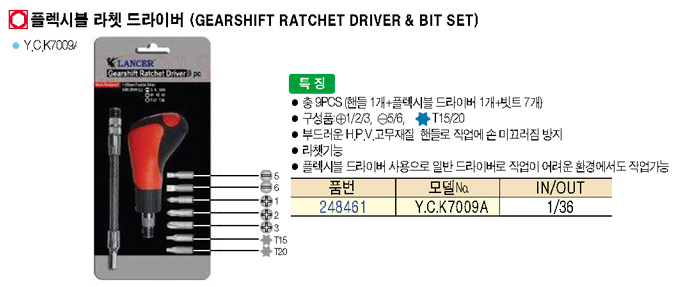 [·£¼­] Ç÷º½Ãºí ¶óàµå¶óÀ̹ö(Gearshift Ratchet Driver & Bit Set) Y.C.K7009A