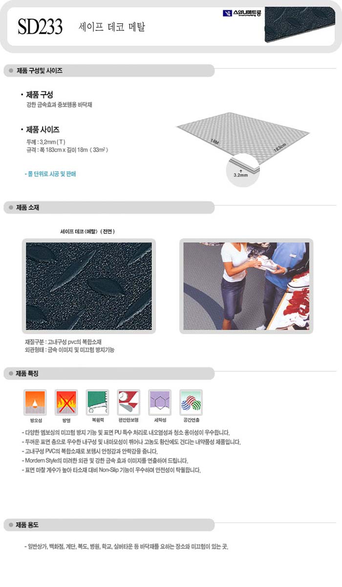 [½º¿Í´Ï] SD233 ¼¼ÀÌÇÁµ¥ÄÚ ¸ÞÅ»-µÎ²²3.2mm(T) Æø183cmx±æÀÌ18m