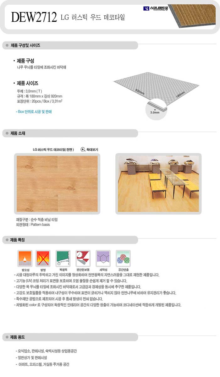 [½º¿Í´Ï] DEW2712 LG¿¡ÄÚ³ë µ¥ÄÚŸÀÏ ·¯½ºÆ½¿ìµå(µÎ²²3.0mm x 180mm x 920mm)(20°³µéÀÌ/¹Ú½º´ÜÀ§ÆÇ¸Å)=>Á¦Ç°´ÜÁ¾!