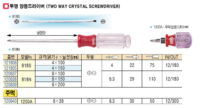 [Åø¸ÞÀÌÆ®] Åõ¸í ¾ç¿ë µå¶óÀ̹ö(Two Way Crystal Screwdriver) 818N (6x100mm)