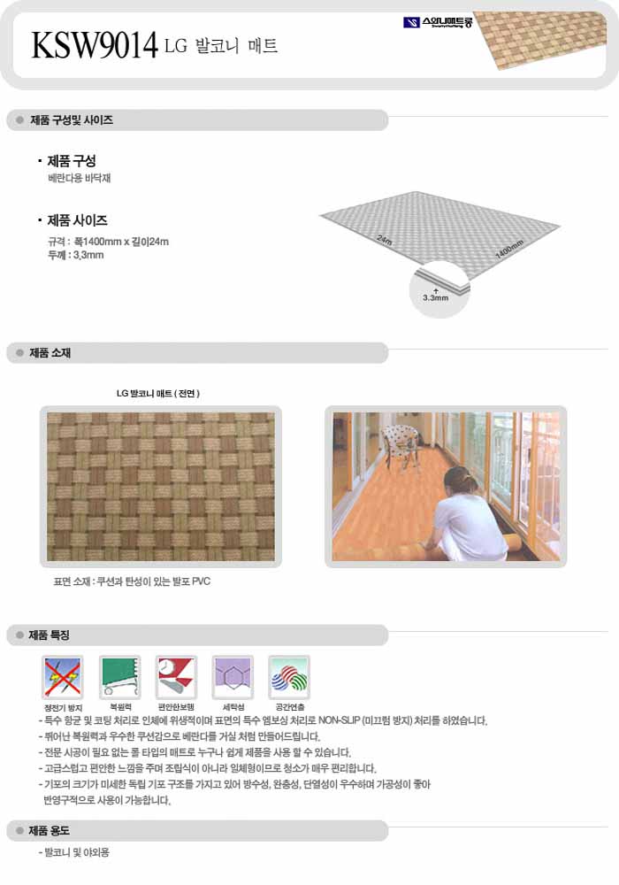 [½º¿Í´Ï]LG¹ßÄÚ´Ï ¸ÅÆ® KSW 9014 (140cm*24M) 1M´ç°¡°Ý=>Á¦Ç°´ÜÁ¾!