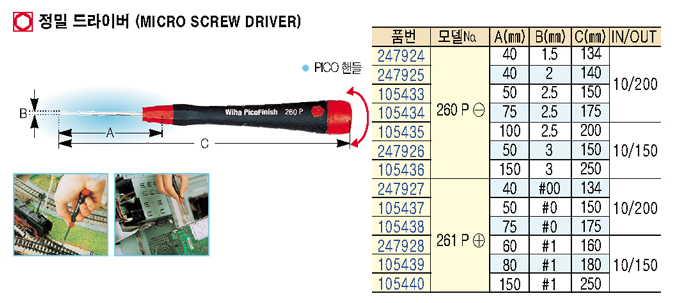 [ÀÌÈ­] Á¤¹Ð µå¶óÀ̹ö(Micro Screw Driver) 261P (+) (A:50mm, B:#0mm, C:150mm)
