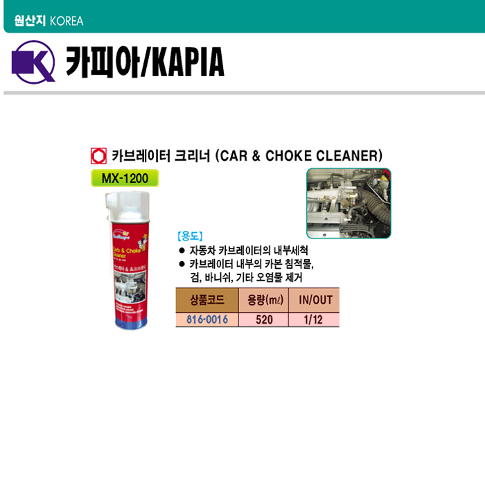 [Ä«ÇǾÆ]Ä«ºê·¹ÀÌÅÍ Å©¸®³Ê(CAR & CHOKE CLEANER)(MX-1200 520ml)