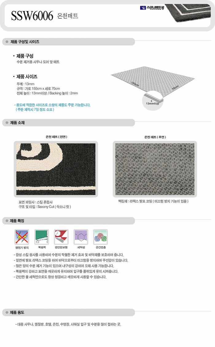 [SW] ¿Âõ¸ÅÆ® SSW6006 (70cm*150cm)(»ö»ó¼±Åð¡´É:ȸ»ö/Àû»ö)