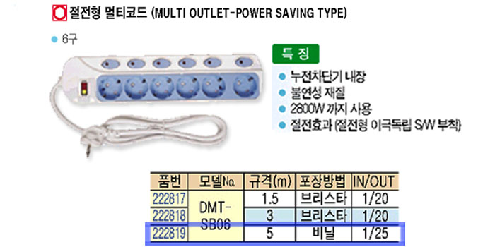 [DAJEON]ÀýÀüÇü ¸ÖƼÄÚµå 6±¸ DMT-SBO6 (±Ô°Ý5m)