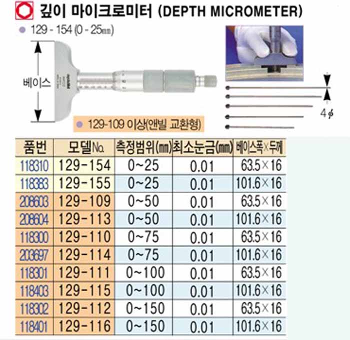 [mitutoyo] ±íÀÌ ¸¶ÀÌÅ©·Î (DEPTH MICROMETER) (129-154)