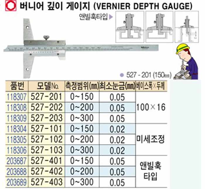 [mitutoyo] ¹ö´Ï¾î ±íÀÌ °ÔÀÌÁö (VERNIER DEPTH GAUGE) (527-201)