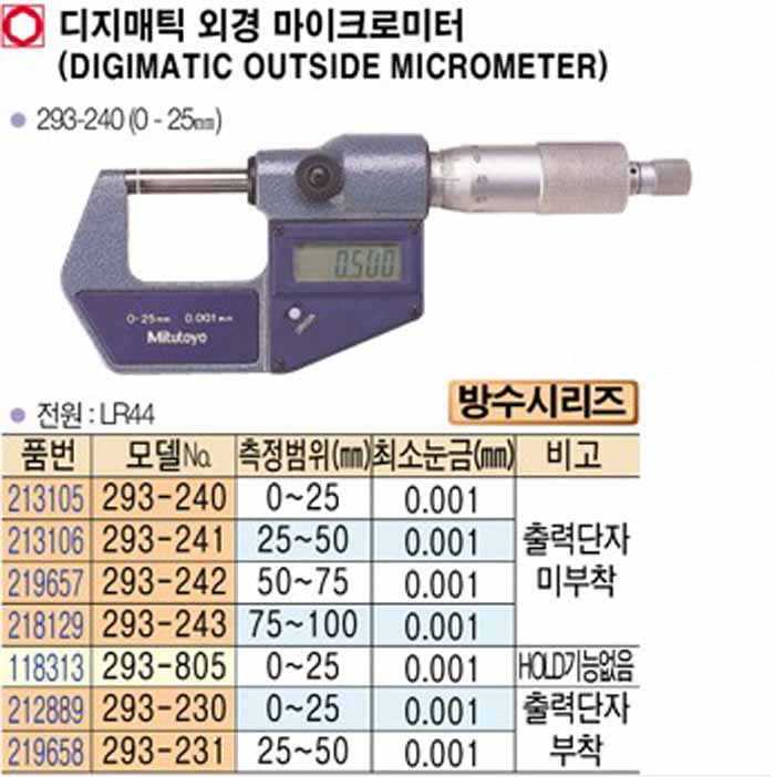[mitutoyo] µðÁö¸Åƽ ¿Ü°æ ¸¶ÀÌÅ©·Î ¹ÌÅÍ (DIGIMATIC OUTSIDE MICROMETER) (293-821)