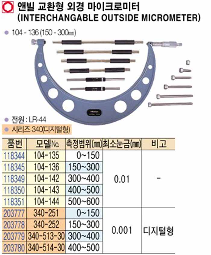 [mitutoyo] ¾Øºô ±³È­Çü ¸¶ÀÌÅ©·Î ¹ÌÅÍ (INTERCHANGABLE OUTSIDE MICROMETER) (340-514-30)