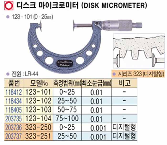 [mitutoyo] µð½ºÅ© ¸¶ÀÌÅ©·Î ¹ÌÅÍ (DISK MICROMRTER) 123-104