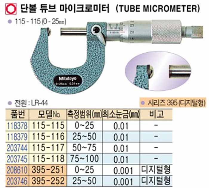 [mitutoyo] ´Üº¼ Æ©ºê ¸¶ÀÌÅ©·Î ¹ÌÅÍ (TUBE MICROMRTER) 115-115