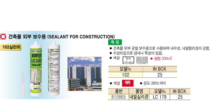 [·°Å°] °ÇÃ๰ ¿ÜºÎ º¸¼ö¿ë (SEALANT FOR CONSTRUCTION)(ȸ»ö LC102 ¼ö¼º½Ç¸®ÄÜ)(¹Ú½º 25°³ ´ÜÀ§ ÆÇ¸Å)