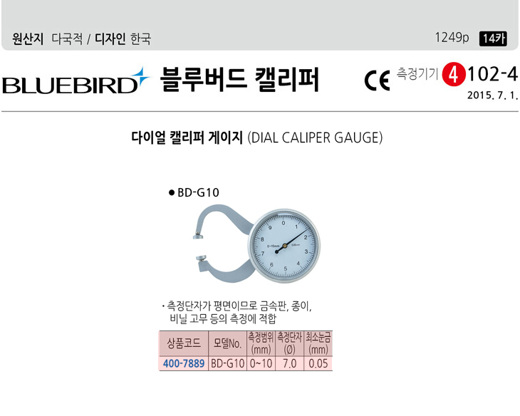 [ºí·ç¹öµå] ´ÙÀÌ¾ó °¶¸®ÆÛ °ÔÀÌÁö(BD-G10, Æò¸éÃøÁ¤, ÃøÁ¤¹üÀ§:0~10mm)(Dial Caliper Gauge)